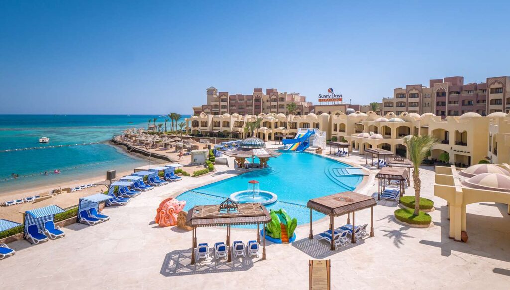 ~12 km Hurghada lennujaamast, ~3 km Hurghada keskusest, mere ääres. Hotell koosneb 2 hoonest (Ex. Sunny Days El Palacio & Sunny Days Palma De Mirette). Avatud 1991 aastal ja viimati renoveeritud 2018 aastal. Territoorium 145,643 m2.